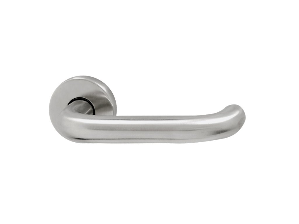 Celonerezové objektové kování s vratnou pružinou Ø51mm. Rozety s výstupky pro lepší fixaci ve dveřích. Objektová třída 3.DIN EN 1906-2002-05.
