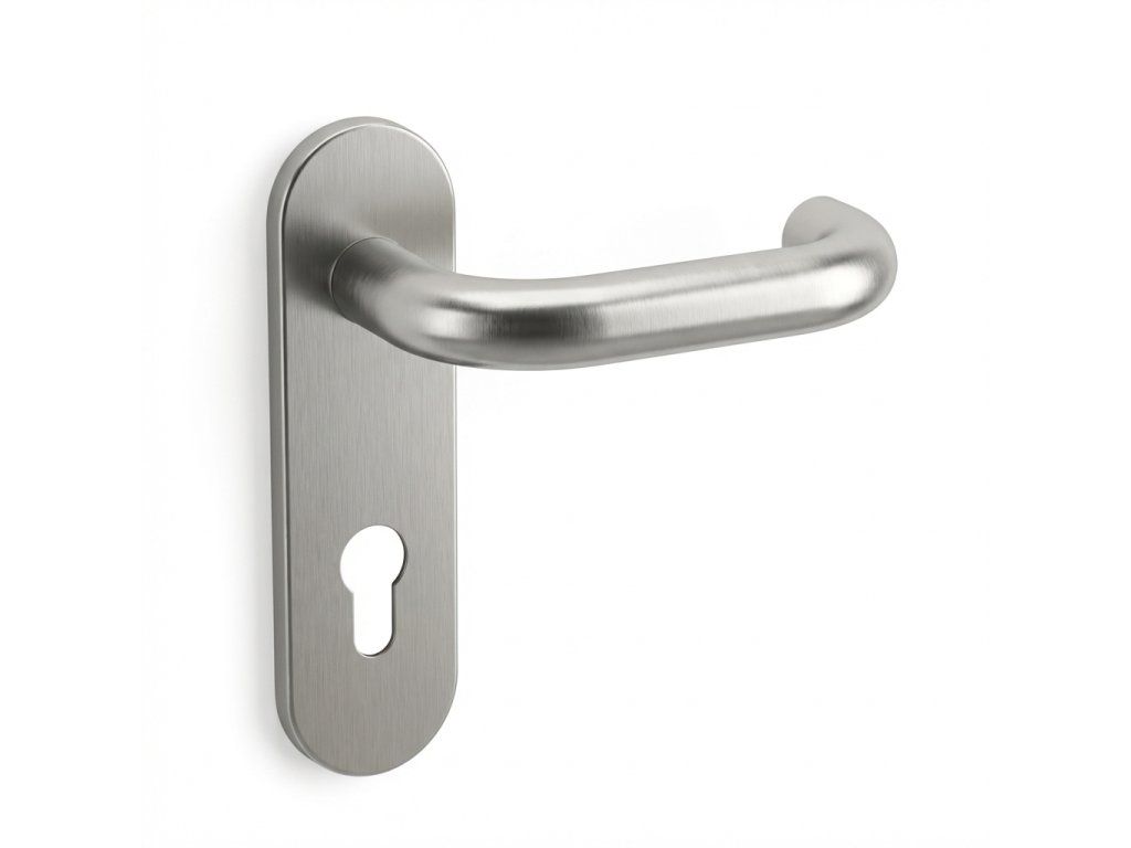 Nerezové štítové kování štít 44 x 164 mm. Provedení nerez mat. Masivní nerezové kování s nerezovou základnou a vratnou pružinou. Standardně dodáváme pouze rozteči 72. Montáž skrz dveře metrickým šroubem a čepičkou na druhou stranu, nebo jen vruty. U provedení klika koule je nutné specifikovat zda-li potřebujete sadu s levou či pravou klikou. Tvar koule pevné 3211 viz. obrázek.