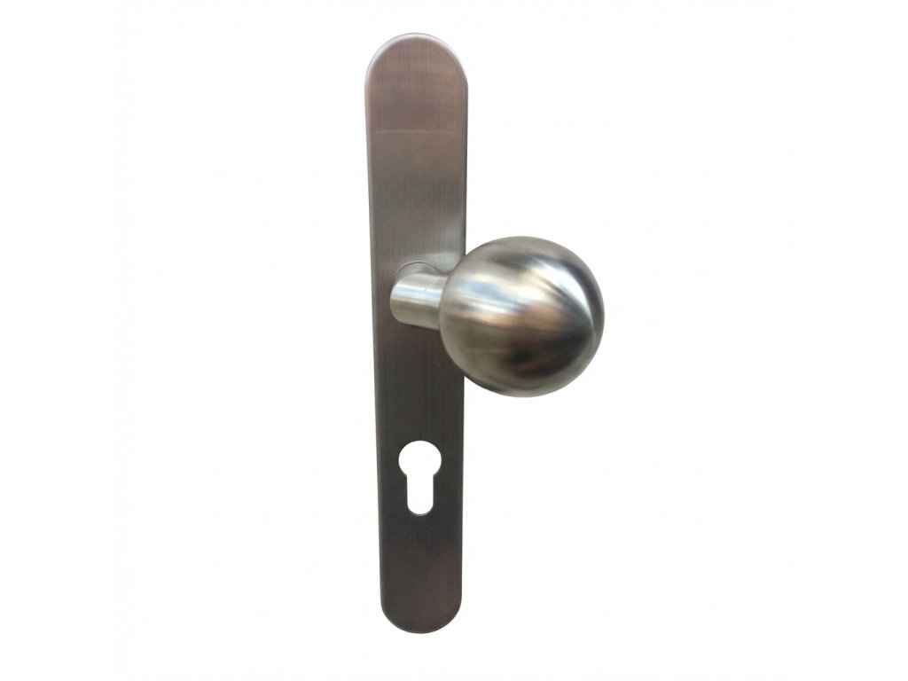 Nerezové štítové kování štít 36 x 245 mm. Provedení nerez mat. Masivní nerezové kování s nerezovou základnou a vratnou pružinou. Standardně dodáváme v rozteči 72 či 90mm, ale na vyžádání umíme i vámi požadovanou rozteč kování například 92mm. Montáž skrz dveře metrickým šroubem a čepičkou na druhou stranu, nebo jen vruty. U provedení klika koule je nutné specifikovat zda-li potřebujete sadu s levou či pravou klikou. Tvar koule pevné 8511 viz. obrázek. Ve WC sadě je standardně wc s rýgl 6mm (česká norma), ale umíme dodat i 8mm (německá norma). Také umíme dodat toto kování v plném štítu.