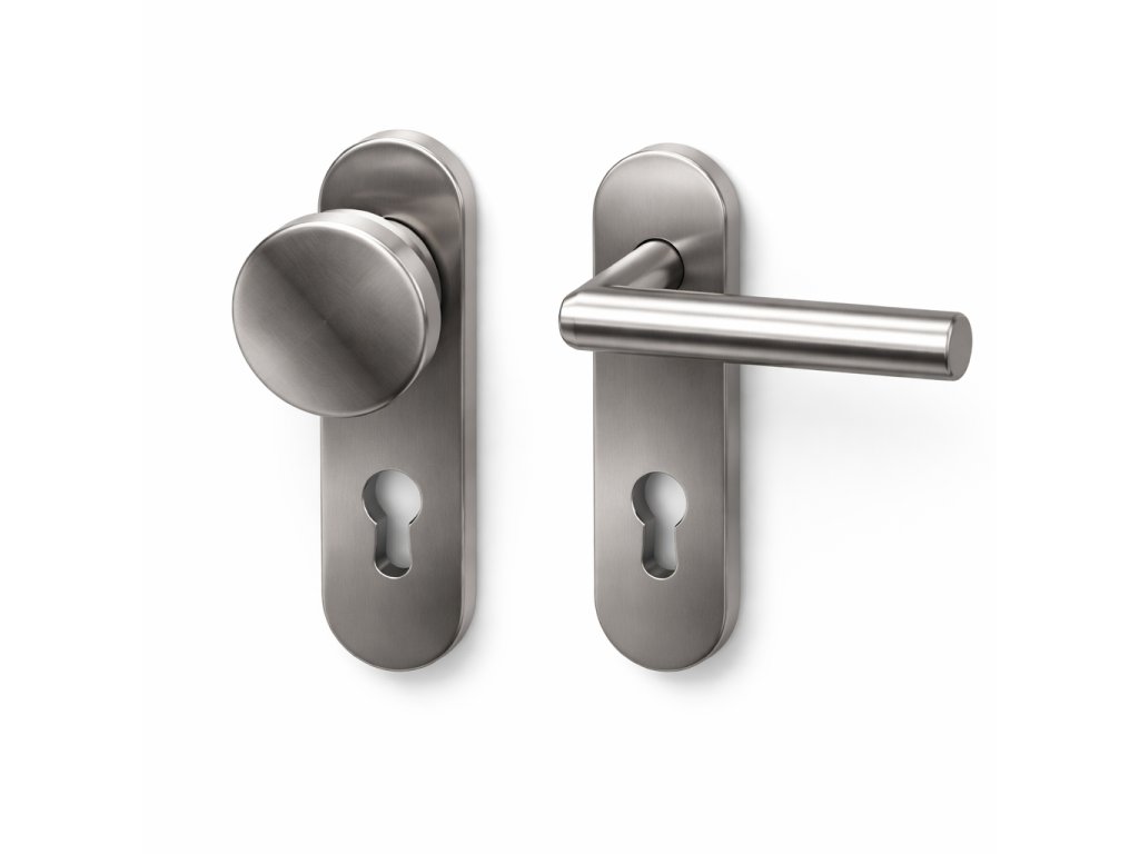 Nerezové štítové kování štít 44 x 164 mm. Provedení nerez mat. Masivní nerezové kování s nerezovou základnou a vratnou pružinou. Standardně dodáváme pouze rozteči 72. Montáž skrz dveře metrickým šroubem a čepičkou na druhou stranu, nebo jen vruty. U provedení klika koule je nutné specifikovat zda-li potřebujete sadu s levou či pravou klikou. Tvar koule pevné 3211 viz. obrázek.