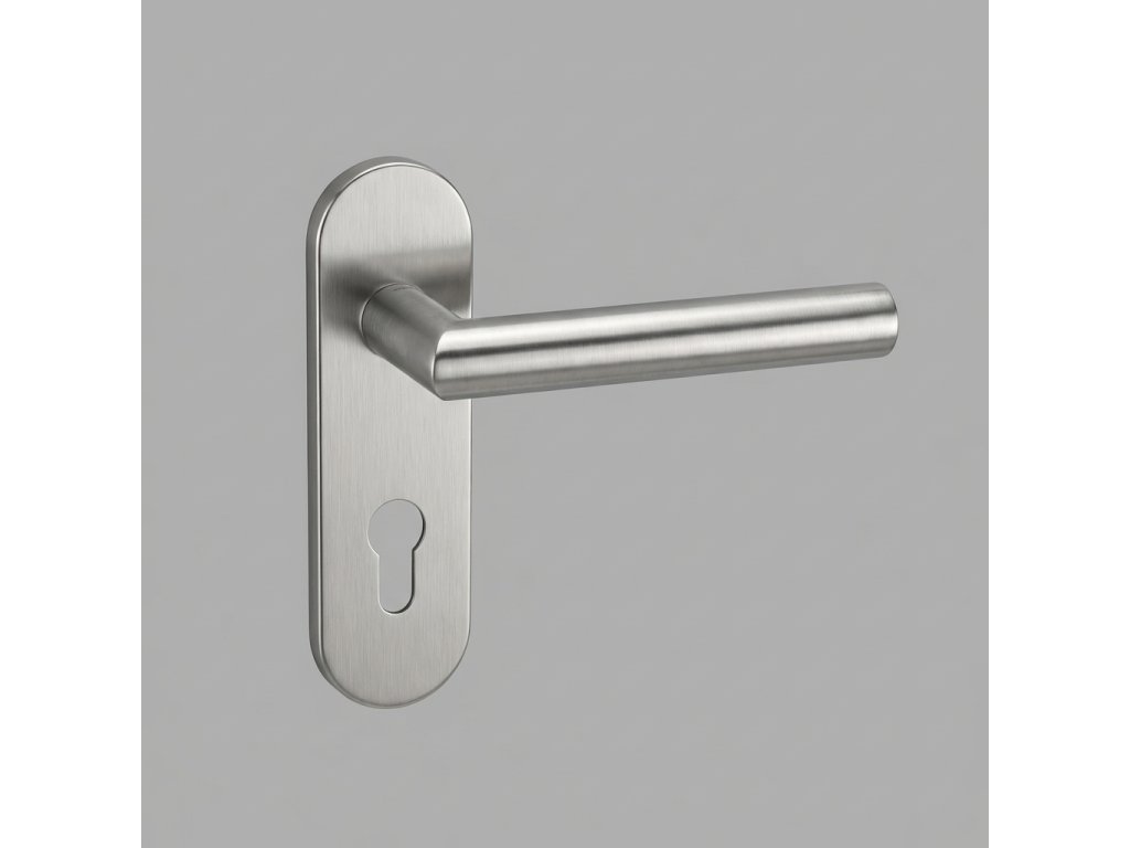 Nerezové štítové kování štít 44 x 164 mm. Provedení nerez mat. Masivní nerezové kování s nerezovou základnou a vratnou pružinou. Standardně dodáváme pouze rozteči 72. Montáž skrz dveře metrickým šroubem a čepičkou na druhou stranu, nebo jen vruty. U provedení klika koule je nutné specifikovat zda-li potřebujete sadu s levou či pravou klikou. Tvar koule pevné 3211 viz. obrázek.